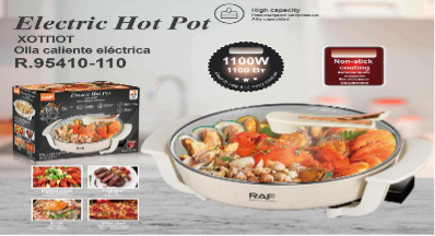 Sartén eléctrico de aluminio fundido 30x30cm. Voltaje: 110V. Funciones: freír, asar, hervir, cocinar al vapor. Cable: 1 metro. Enchufe americano. Para uso doméstico. Disponible en color Naranja (1350W, 2L) y Beige (1100W, 2.5L).